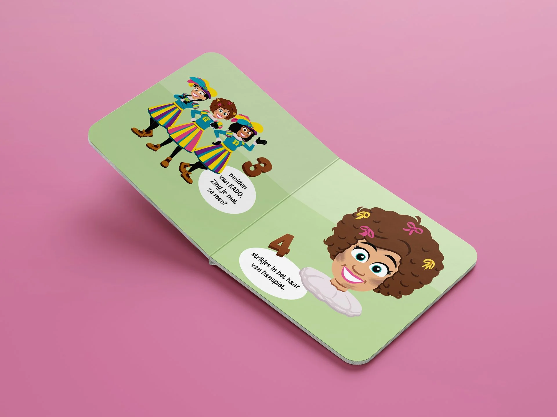 Alongside this book, I also illustrated Hoeveel Pepernoten tel jij? and Welke kleur heeft jouw pakje?, two playful titles built around counting, color, and interaction.